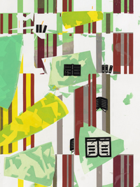 Siebdruckfarbe und Collage auf Papier